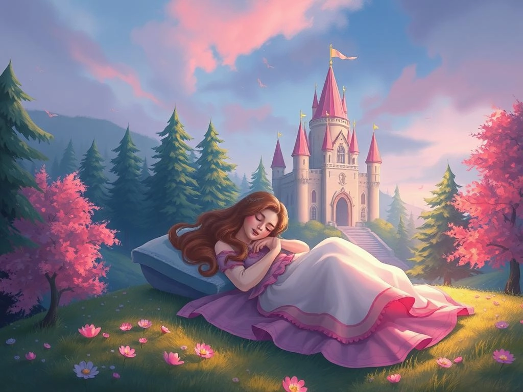 Description: Une jeune princesse qui rêve d'une autre vie, avec des éléments magiques, une méchante sorcière et une fin heureuse.